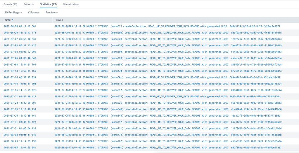 At this point will include the ugly splunk SPL (since I didn’t parse the logs) on the of chance its helpful to someone