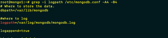 Logging was remarkably quick to configure (may in some versions be enabled by default). Modify config file @ /etc/mongodb.conf and uncomment the log path line – Default log path set to logpath=/var/log/mongodb/mongodb.log. If you change the configuration be sure to restart MongoDB service (systemctl restart mongodb.service)
